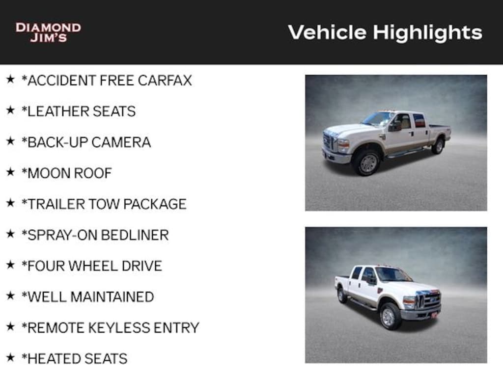 *ACCIDENT FREE CARFAX, *LEATHER SEATS, *BACK-UP CAMERA, *MOON ROOF, *TRAILER TOW PACKAGE, *SPRAY-ON BEDLINER, *FOUR WHEEL DRIVE, *WELL MAINTAINED, *REMOTE KEYLESS ENTRY, *HEATED SEATS, *ALLOY WHEELS. Clean CARFAX. 4D Crew Cab Power Stroke 6.4L V8 DI 32V OHV Twin Turbo Diesel TorqShift 5-Speed Automatic with Overdrive 4WD Lariat