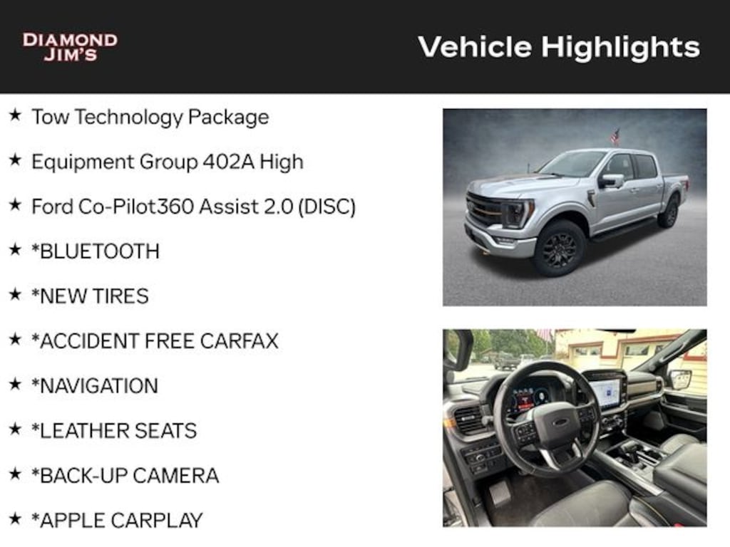 *BLUETOOTH, *NEW TIRES, *ACCIDENT FREE CARFAX, *NAVIGATION, *LEATHER SEATS, *BACK-UP CAMERA, *APPLE CARPLAY, *TRAILER TOW PACKAGE, *BEDLINER, *FOUR WHEEL DRIVE, *WELL MAINTAINED, *BLIND SPOT MONITOR, *REMOTE START, *HEATED STEERING WHEEL, *HEATED & VENTILATED SEATS, *ADAPTIVE CRUISE CONTROL, 12" Productivity Screen in Instrument Cluster, 2nd Row Heated Seats, 360 Degree Camera, Advanced Security Pack, Ambient Lighting, Body-Color Door Handles w/Body-Color Bezel, Carpeted Floor Mats w/Tremor Logo, Connected Built-In Navigation (DISC), Dual Zone Electronic Automatic Temperature Control, Electronic Locking w/3.73 Axle Ratio, Equipment Group 402A High, Evasive Steering Assist, Extended Range 36 Gallon Fuel Tank, Ford Co-Pilot360 Assist 2.0 (DISC), Heated Steering Wheel, Integrated Trailer Brake Controller, Intelligent Access w/Push Button Start, Intelligent Adaptive Cruise Control w/Stop & Go, Intersection Assist, Leather-Wrapped Steering Wheel, LED Projector w/Dynamic Bending Headlamps, LED Sideview Mirror Spotlights, Navigation system: Connected Navigation, Onboard 400W Outlet, Power Glass Sideview Mirr w/Body-Color Skull Caps, Power Tilt/Telescoping Steering Column w/Memory, Power-Adjustable Pedals, Power-Sliding Rear Window, Pro Trailer Backup Assist, Radio: B&O Sound System by Bang & Olufsen, Rain-Sensing Wipers, Rear Under-Seat Storage, Remote Start System w/Remote Tailgate Release, SecuriCode Drivers Side Keyless-Entry Keypad, Speed Sign Recognition, SYNC 4 w/Enhanced Voice Recognition, Tow Technology Package, Trail Control, Unique Tremor Leather-Trimmed Bucket Seats, Universal Garage Door Opener, Wireless Charging Pad, Zone Lighting. CARFAX One-Owner. 4D SuperCrew 3.5L V6 EcoBoost 10-Speed Automatic 4WD Tremor