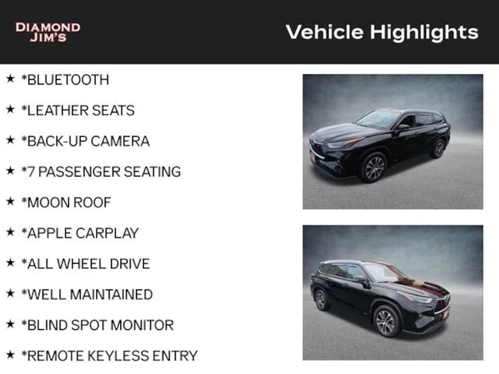 *BLUETOOTH, *LEATHER SEATS, *BACK-UP CAMERA, *7 PASSENGER SEATING, *MOON ROOF, *APPLE CARPLAY, *ALL WHEEL DRIVE, *WELL MAINTAINED, *BLIND SPOT MONITOR, *REMOTE KEYLESS ENTRY, *HANDS FREE PHONE, *HEATED SEATS, *ADAPTIVE CRUISE CONTROL, *ALLOY WHEELS, Navigation System. CARFAX One-Owner. 4D Sport Utility 2.5L I4 PDI Hybrid DOHC 16V LEV3-SULEV30 186hp eCVT AWD XLE